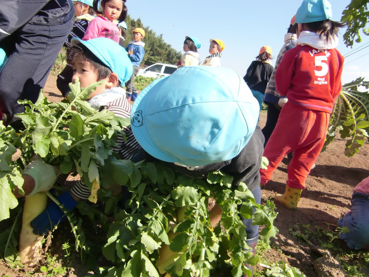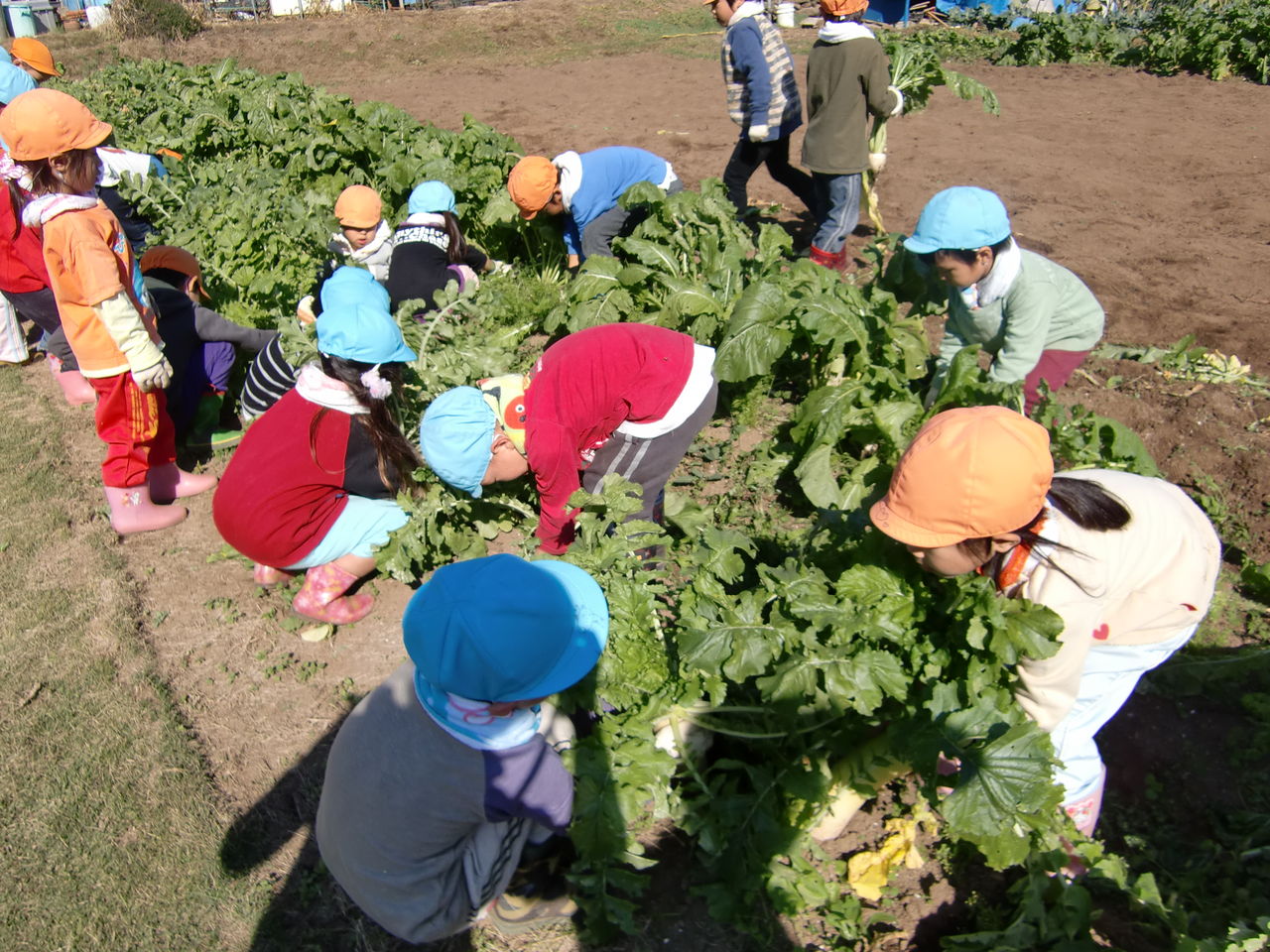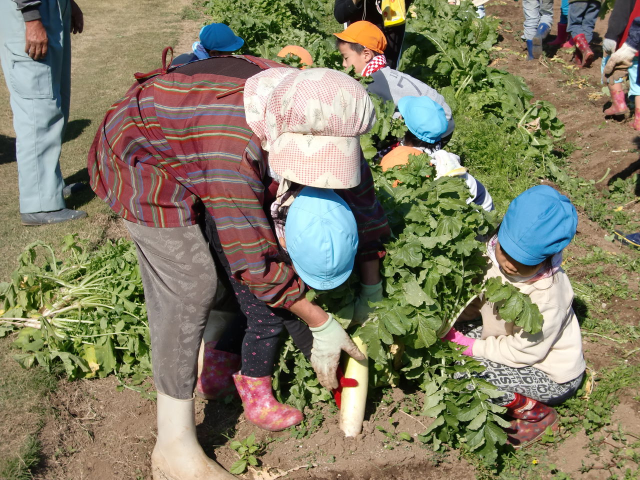 大根やかぶを抜いたり青梗菜・からし菜・・・・・等など