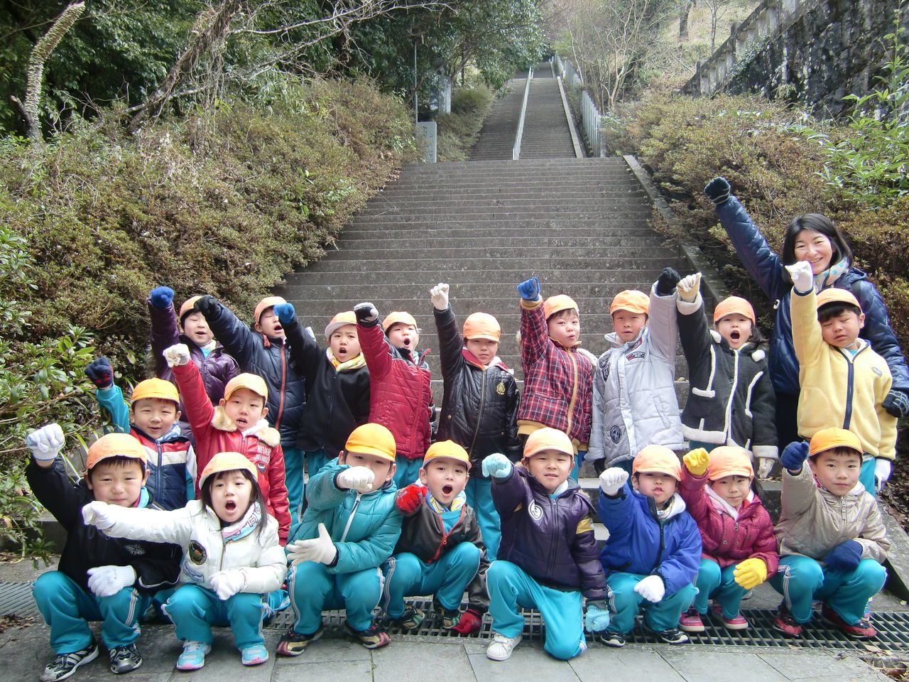到着し、石段の話を聞きいざスタート(*゚▽゚*)![]()