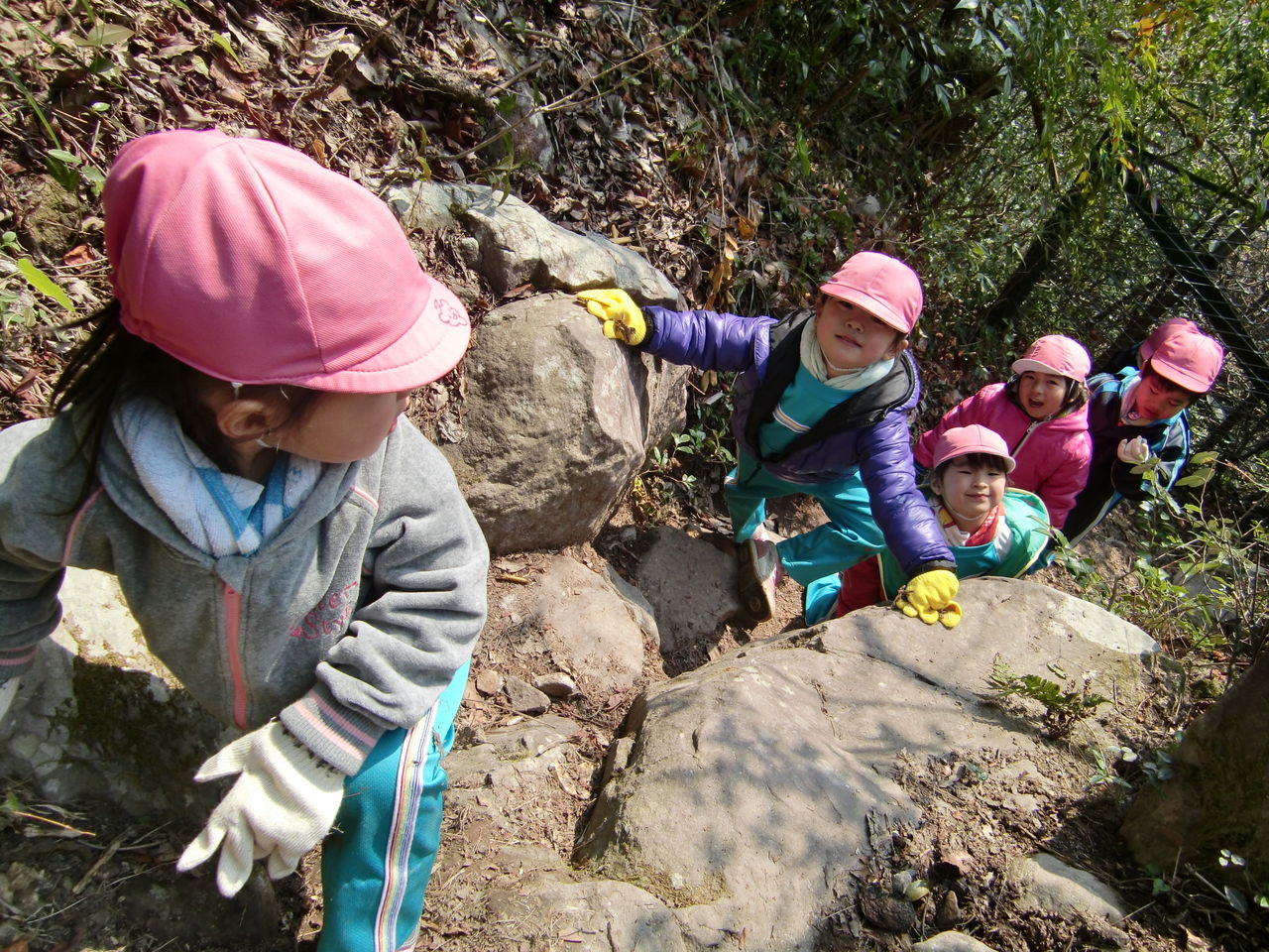 自分のペースで登って行く子ども達![]()