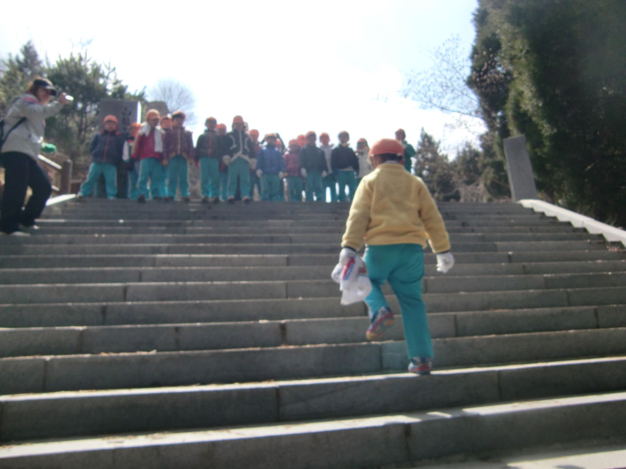 頂上では、一番最後に来るお友達を皆で